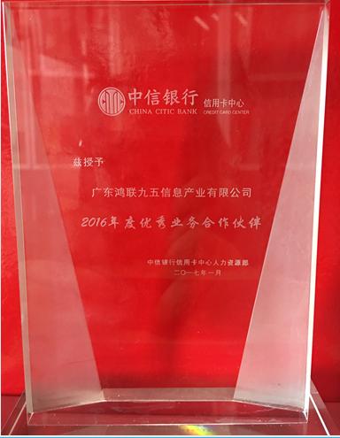 廣東鴻聯(lián)九五在與中信銀行信用卡中心的合作過(guò)程中積累了豐富的經(jīng)驗(yàn)。2016年,人才開發(fā)業(yè)務(wù)中心為保障中信銀行信用卡中心的人力需求、為其提供人力外包、人力派遣、社招、校招等優(yōu)質(zhì)的專業(yè)化人力資源服務(wù),獲中信銀行信用卡中心認(rèn)可。2017年1月,廣東鴻聯(lián)九五信息產(chǎn)業(yè)有限公司被中信銀行信用卡中心授予“2016年度優(yōu)秀業(yè)務(wù)合作伙伴”稱號(hào)。