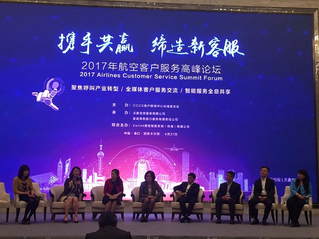 本次論壇由CCCS客戶聯絡中心標準委員會主辦,全國多家航空公司包括國航、南航等以及相關技術企業的高層領導共聚一堂,共同探討聯絡中心產業轉型、全媒體客戶服務、智能服務等熱點議題,闡述互聯網時代下航空客戶服務所面臨的挑戰和機遇。高路總在21日下午與中國國航,海南航空,山東航空,廈門航空、海爾集團、四川天翼等航空呼叫中心業界領導同臺分享,分析呼叫中心在航空企業中的服務規模及服務能力,嘉賓對話環節中,圍繞呼叫中心產業轉型、人工智能應用、客戶體驗在流程搭建與再造上的延伸等展開熱烈討論。