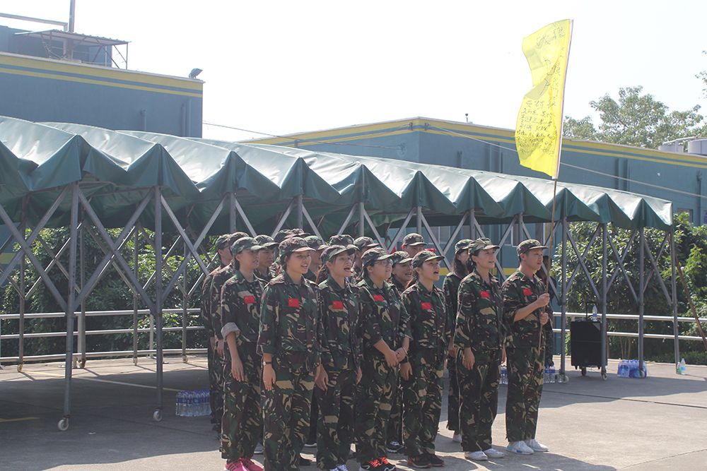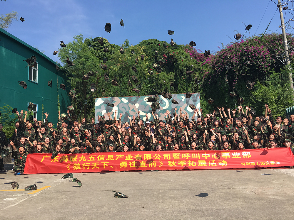 乘坐上班車,一路歡歌笑語后大家齊聚在本次活動的首個目的地:大鵬拓展訓練基地,進行以“狼行天下,勇往直前”為主題的拓展訓練。八分鐘收拾好行李,整理完著裝,所有人整齊的列隊在驕陽下。