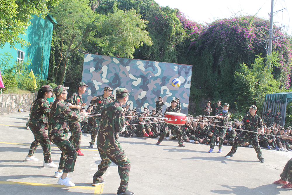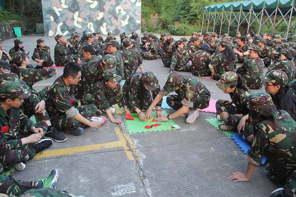 隨后,正式進入戶外場地開始訓練。不僅有集體木鞋、擊鼓顛球等團隊合作項目,還有七巧板、青蛙過河等智力與合作相結合的項目。