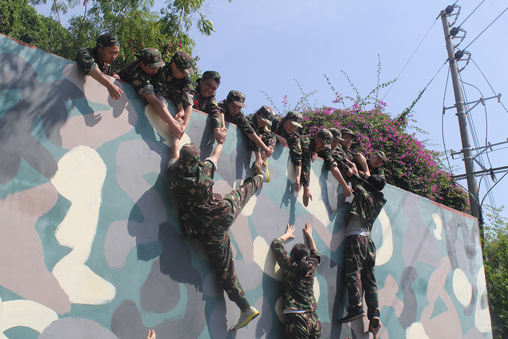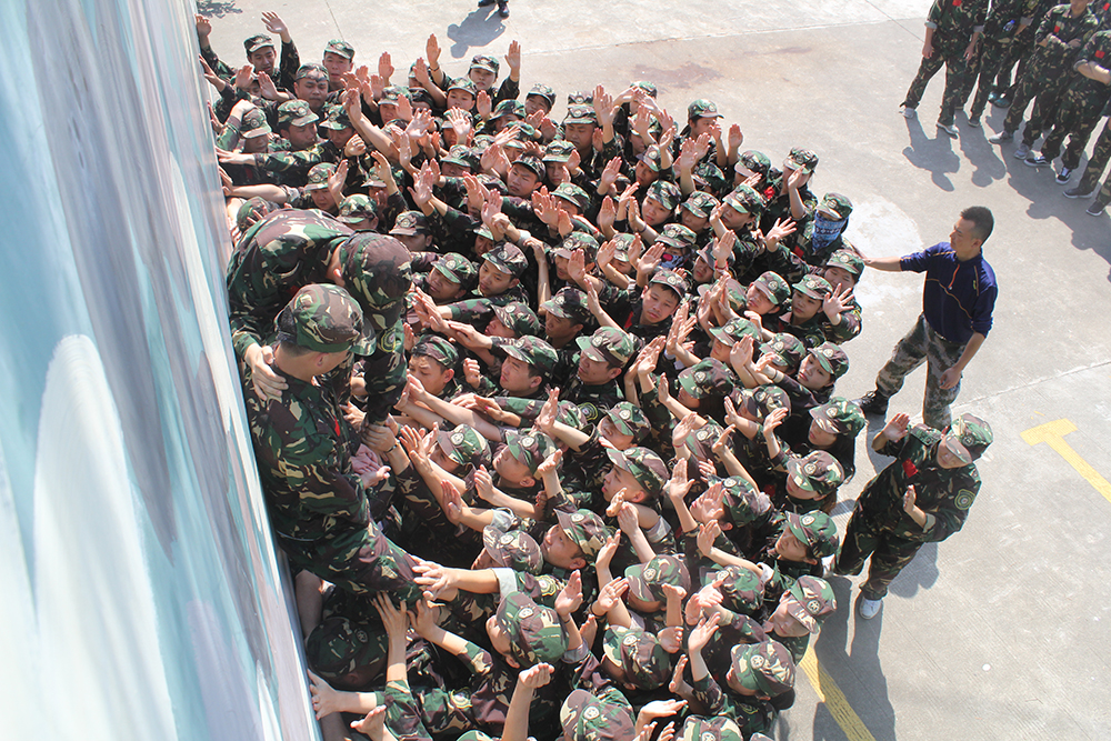 最有意義的活動出現在最后——翻越“畢業墻”,也叫“逃生墻”或“勝利墻”。其規則是團隊所有人在不借助其他任何工具的情況下,全部翻越4.2米的直立高墻。