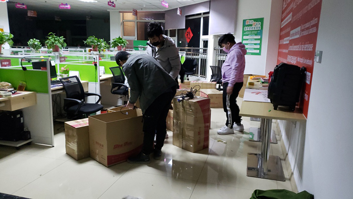為了保證小伙伴們都能順利辦公,更保證在用戶需要的時刻為用戶提供更及時的服務,大家都沒有停下腳步,不少人義無反顧的堅守崗位。我們會相互幫助家里有電腦的小伙伴調試好電腦等設備,對于家里沒電腦的小鴻人,住宿的小伙伴們會義不容辭地到宿舍區跑過來幫忙打包公司電腦以寄到家里沒電腦的小鴻人住處。