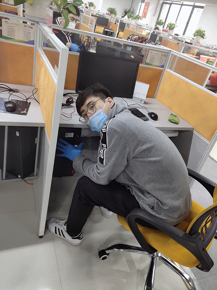 我記得有一天去公司安裝宣傳海報,當時已經下午五六點了,本以為單位不會有人在,結果發現很多人都在進進出出的忙活著,原來是小伙伴們在為疫情期間的SOHO做準備,拆電腦、搬電腦、信息登記……就連保安大叔都在幫忙,還有技術支撐的同事24小時在職輪崗,幫助大家調節設備。仔細想來他們大部分也都是20出頭的小孩,但是在面對工作的時候也是毫無退縮。